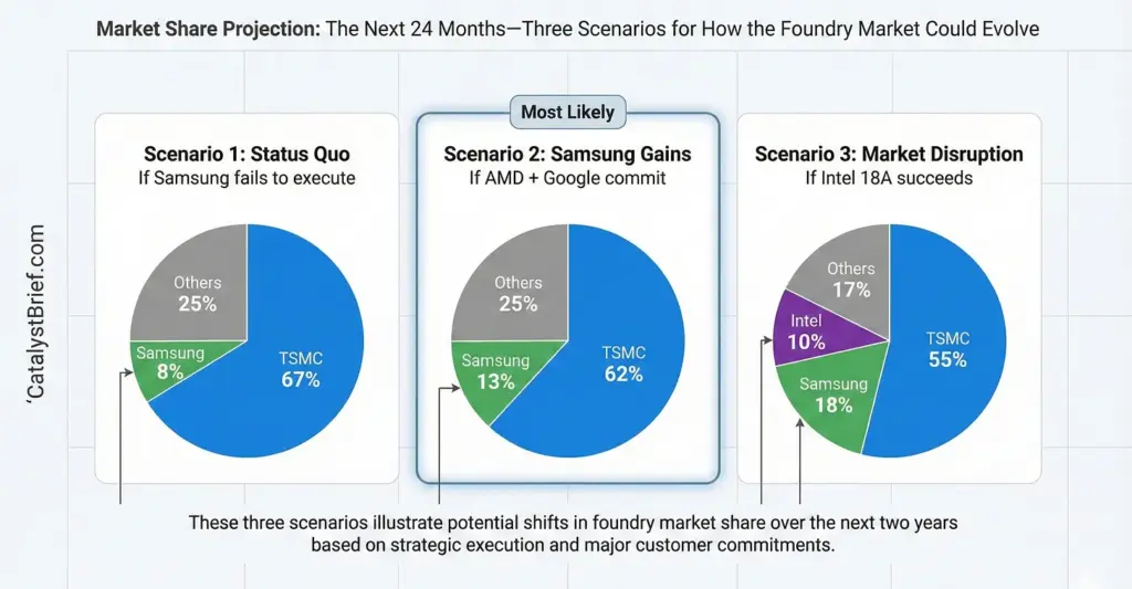 For Samsung, the current moment represents a genuine inflection point. The combination of favorable regulatory positioning, aggressive pricing, strategic geography, and TSMC’s capacity constraints creates conditions that may not persist indefinitely. If the company can execute technically, deliver on yield targets, and build trust with major customers, the Taylor fab could serve as the foundation for a sustained challenge to TSMC’s foundry dominance. The $16.5 billion USD Tesla contract provides both financial stability and a high-profile reference customer that could attract additional business.