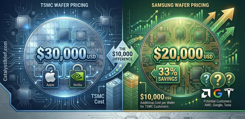 Samsung has not relied solely on geography to win business. The company has deployed an aggressive pricing strategy that undercuts TSMC by approximately 33%. While TSMC’s 2nm wafers are priced at around $30,000 USD each, representing a 10-20% increase over its 3nm process, Samsung has set its SF2 wafer pricing at approximately $20,000 USD. For companies designing chips that require thousands or tens of thousands of wafers, this $10,000 USD differential represents hundreds of millions in potential savings.