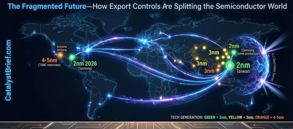 The stakes extend beyond the immediate competitive dynamics between TSMC and Samsung. The fragmentation of advanced semiconductor manufacturing across geographic and regulatory boundaries has implications for innovation velocity, technology access, and global economic integration. If the most powerful AI systems can only be built using chips manufactured in specific locations due to regulatory restrictions, it could create new forms of digital divide and competitive imbalance.