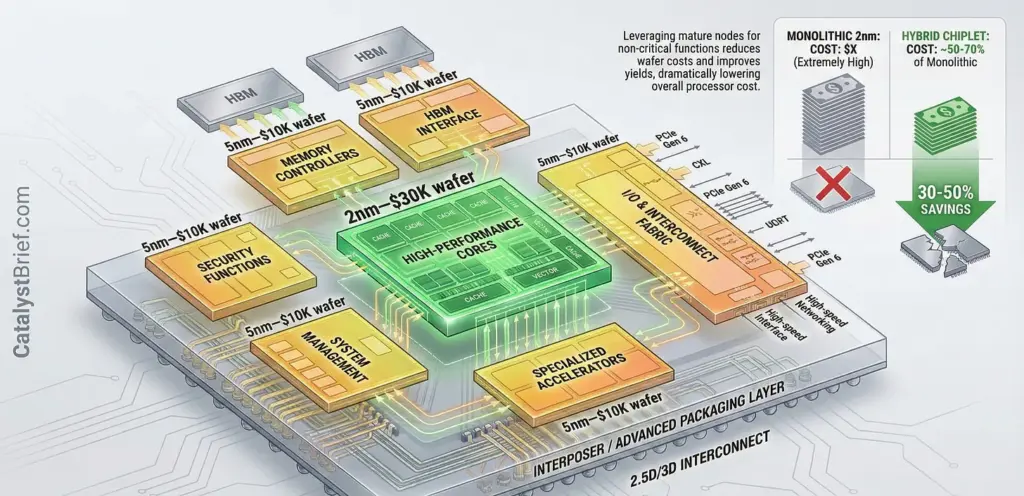 This dynamic is already driving changes in chip design strategies. Rather than building entire processors on the most expensive 2nm nodes, companies are increasingly adopting chiplet architectures where only the most performance-critical compute dies use the leading edge, while less sensitive components remain on older, cheaper nodes. This approach can reduce costs by 30-50% while still delivering the performance benefits where they matter most for AI and high-performance computing workloads