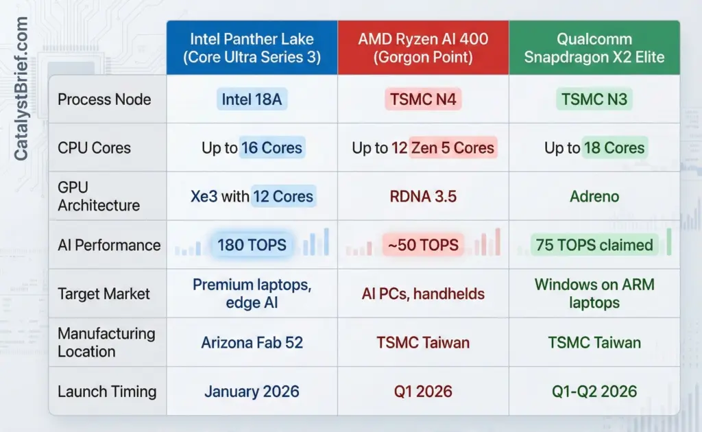 But Intel isn’t operating in vacuum. AMD CEO Dr. Lisa Su will deliver the opening keynote at CES 2026 on January 5, outlining AMD’s vision for AI solutions spanning cloud to edge devices. The company’s Ryzen AI 400 series chips codenamed “Gorgon Point” feature up to 12 Zen 5 CPU cores with RDNA 3.5 graphics, targeting AI PC and handheld gaming markets where power efficiency determines viability.
